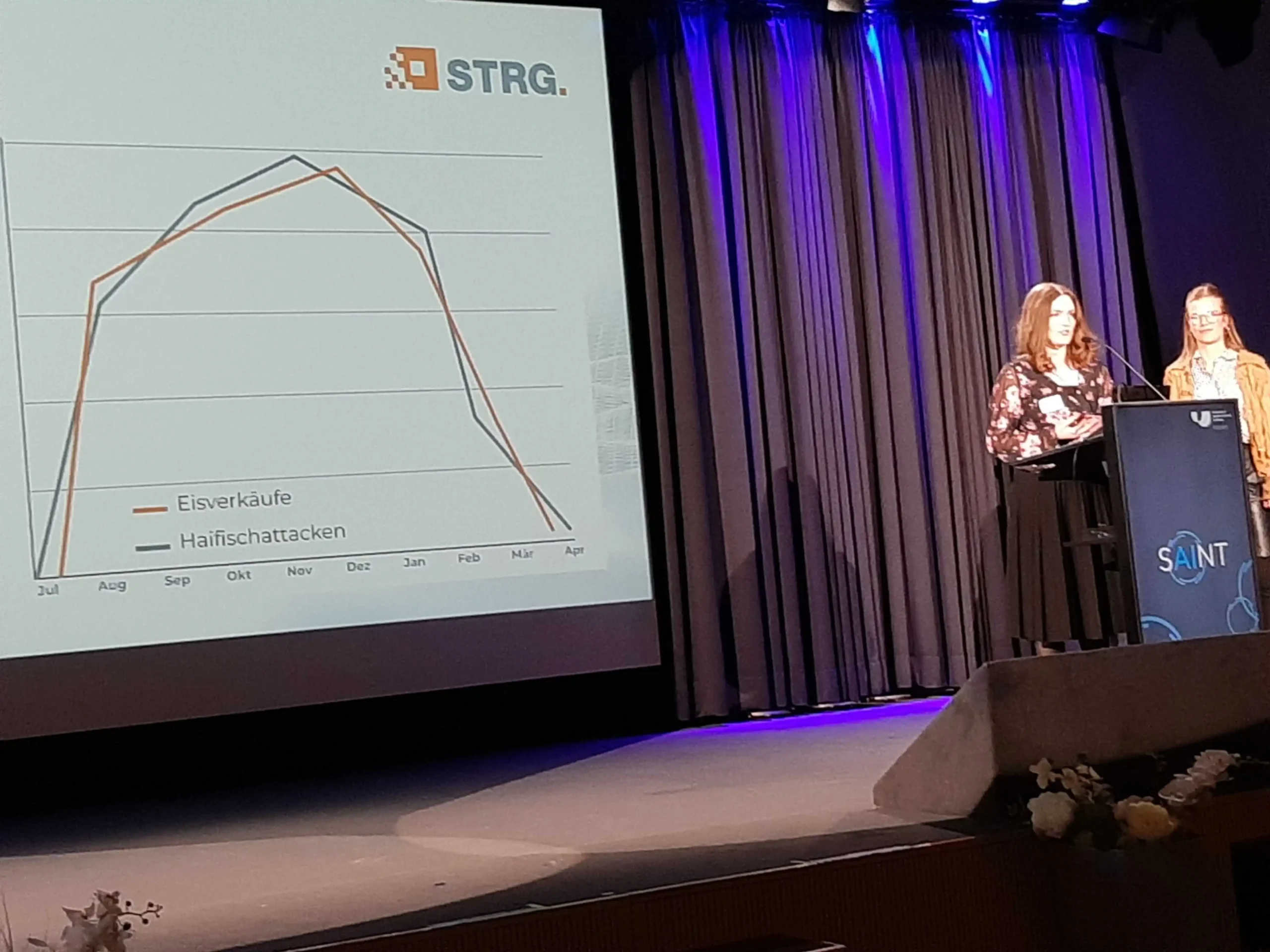 Ein Thema, das besonders relevant ist und aktuell noch zu wenig Aufmerksamkeit erhält, ist die Kausale KI. Hier setzte der Vortrag von Lilli Joppien und Lisa Latzelsperger von STRG an. Unter dem Titel “Von Daten zu Entscheidungen: Anwendungen kausaler KI in industriellen Kontexten” zeigten sie, warum klassische KI-Ansätze in vielen Business-Szenarien an ihre Grenzen stoßen.